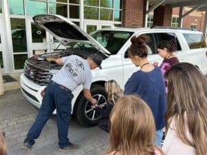 “At the auto care station, they get a small tire gauge,” said Shirley. ‘’At the cooking station, they take home a set of measuring cups. We do a little keychain flashlight at the safety station and a mini screwdriver at the electrical station. They can take home items to use as they move out on their own.”