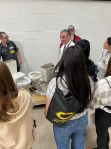 The event runs all day for Commerce’s 126 seniors. That morning, students rotate through nine stations led by community volunteers and business professionals, learning to check their oil, change a tire, cook a simple dish, do laundry, budget on a given income, perform basic electrical and plumbing tasks, and more. The Commerce Public Library and voter registration also set up tables during break time.